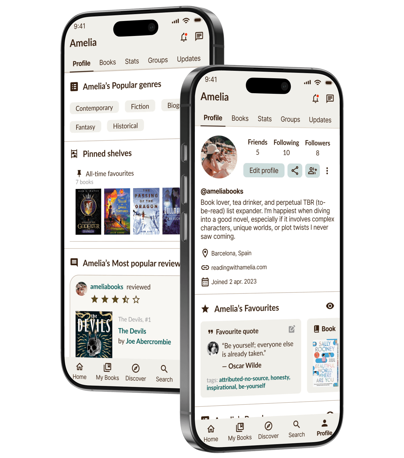 Para incentivar la interacción y conexión entre lectores, la propuesta se centra en el rediseño del perfil basado en las necesidades de las user personas. Permitiendo un perfil personalizable y representativo de cada uno para descubrir libros conectando con usuarios con intereses similares de una manera más fácil. Las nuevas funciones crean un perfil versátil dependiendo de lo que el usuario prefiera compartir con otros, resultando en una experiencia más atractiva y centrada en la comunidad.